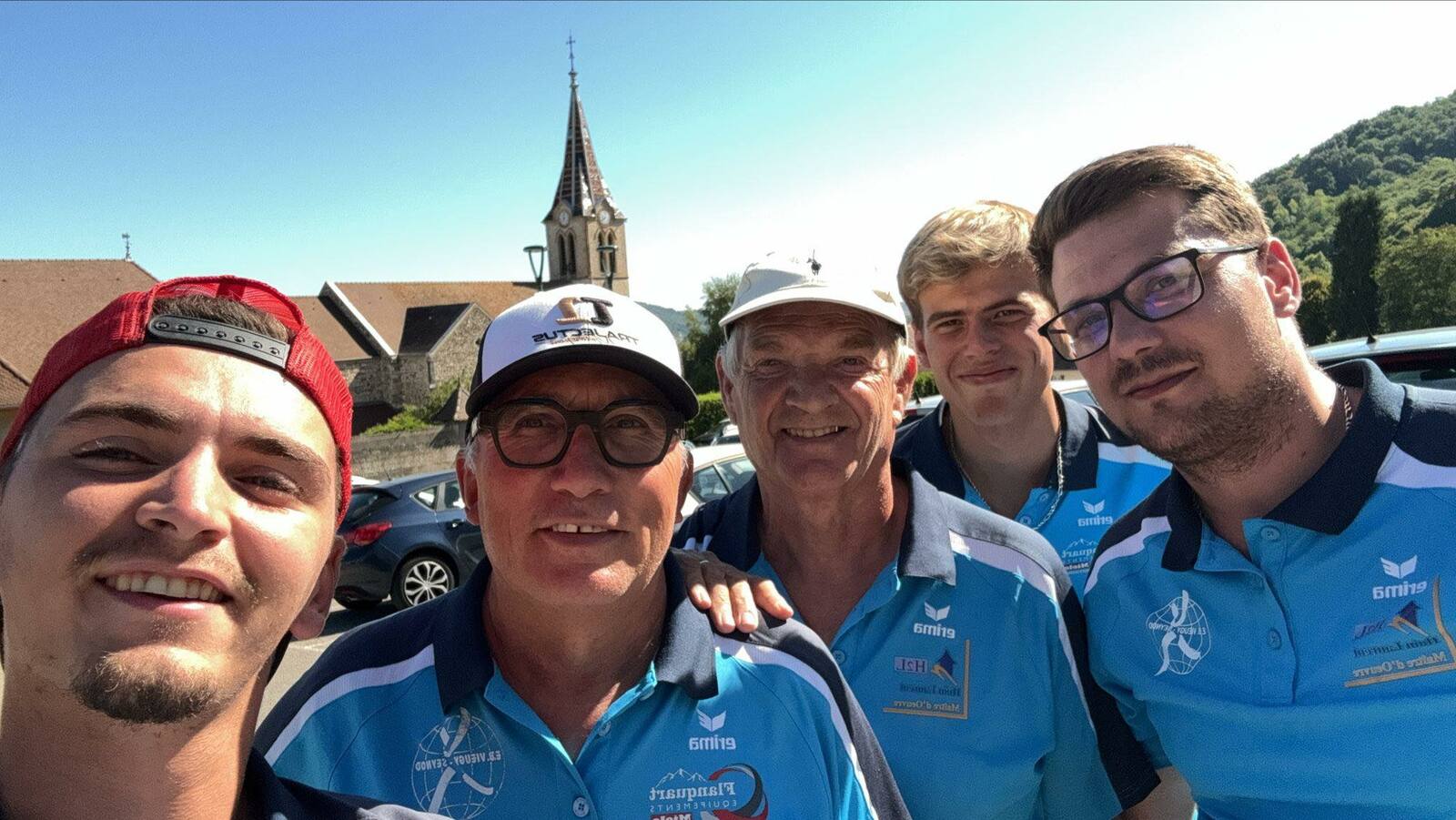Jeudi 7 août à Vignieu - 32Q TD - défaite en 1/4 de finale pour Lucas DELOCHE, Gabin MERLOZ, Jérémy VIBERT-VALLET, Gérard MUGNIER et Thierry MENTHON