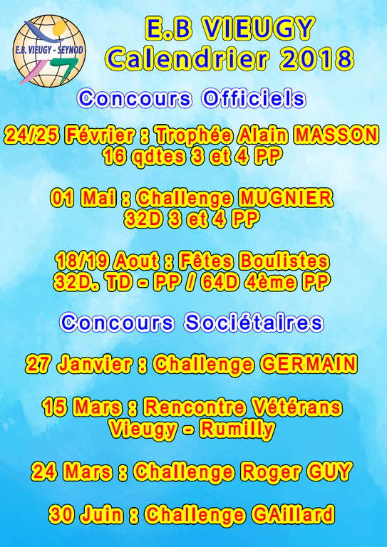 Calendrier des concours 2018