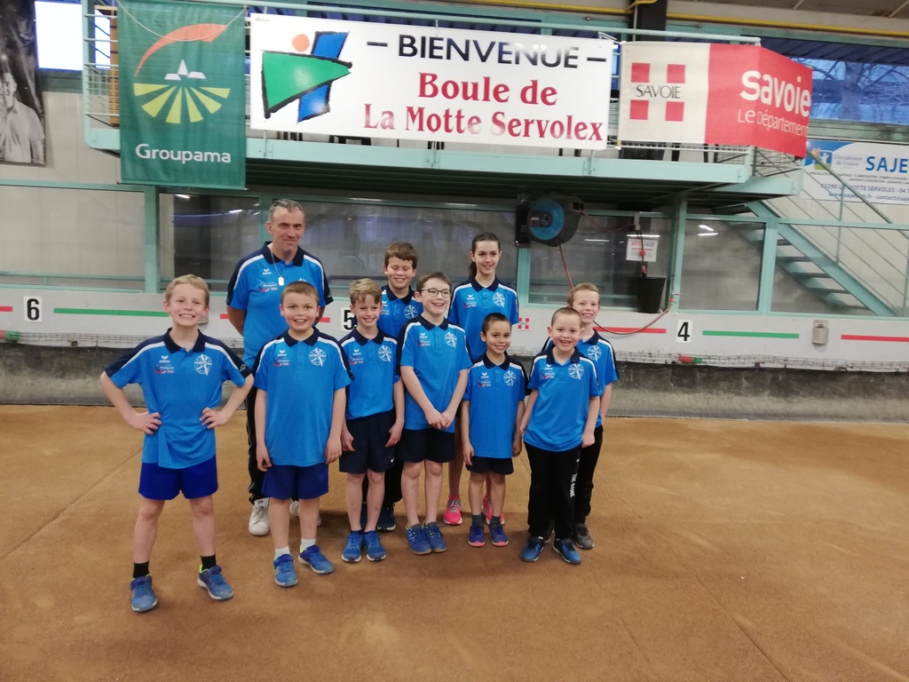 Une délégation de 9 jeunes de l'Espérance Boule était présente lors de la 4ème journée du challenge des 2 Savoie, encadrée par leur manager Jean-Yves Merloz.