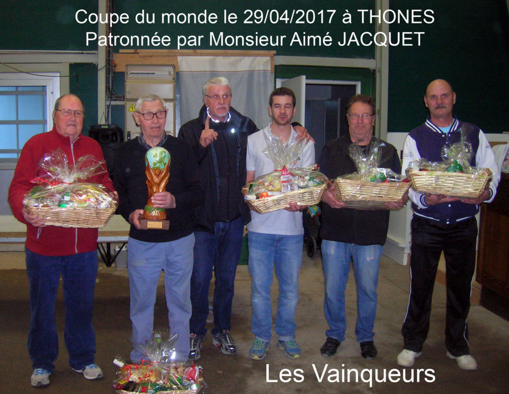 Aimé JACQUET pratiquant averti de notre sport avait offert une réplique de la coupe du monde remportée en 1998 par l'équipe de France à nos amis du club de THONES qui ont eu la bonne idée de la disputer à l'occasion d'un concours intersocietaires.