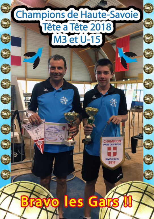 Deux titres de champion départemental en simple ce week-end à Thonon pour l'Espérance Boule avec les victoires de Quentin VANDENBERGHE en G15 et de notre jeune sexagénaire Jacky FRANI en M3.