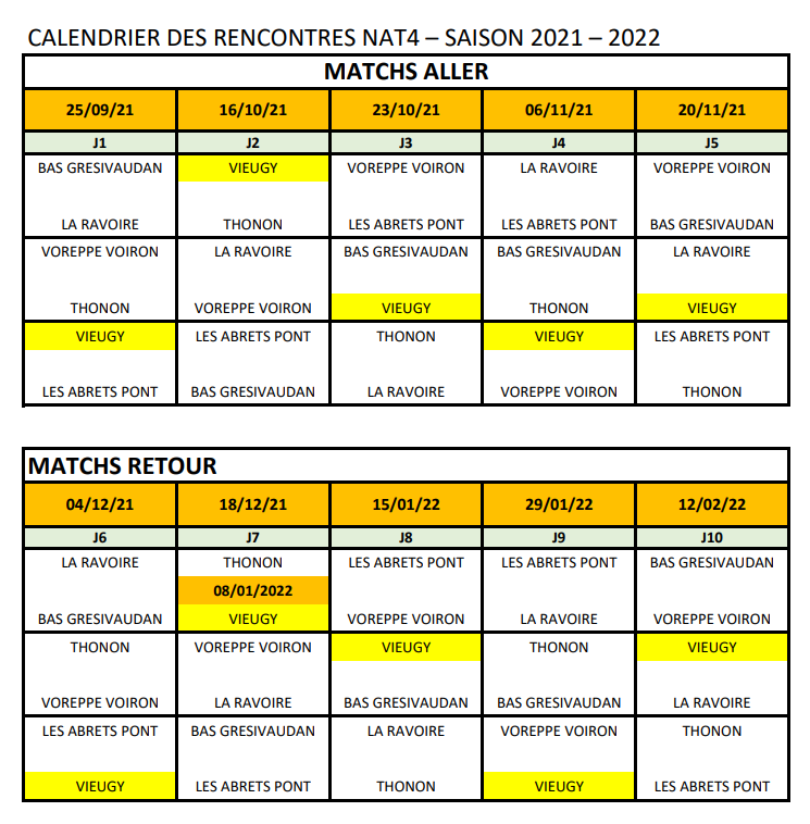 Quelques dates de rencontre de club ont été modifiées pour l'équipe N4.