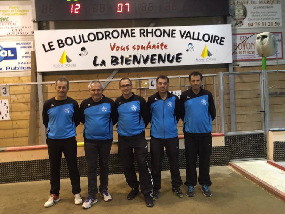 Christophe GARCIN, Jean-Michel BUTTIN, Gérard MEUNIER, Laurent DELOCHE et Jacky FRANI s'inclinent en demi-finale du 32Q par poule (3ème et 4ème D.) d'ANNEYRON