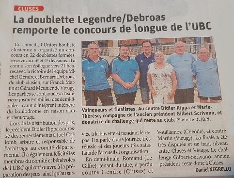 Notre président, Gérard MEUNIER associé à Franck MARTIN s'inclinent en finale du challenge SCRIVANO à Cluses.