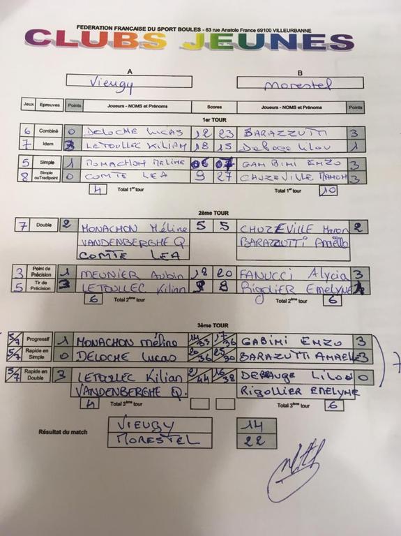 Notre équipe U15 s'incline à domicile contre une bonne équipe de MORESTEL sur le score de 14 à 22.