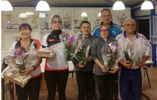 Notre équipe F2 ( Lucie, Aurélie et Nelly) remporte les 2 premières parties mais s'incline de justesse lors de la 3ème partie devant les finalistes PECOUD sur le score de 11 à 10.