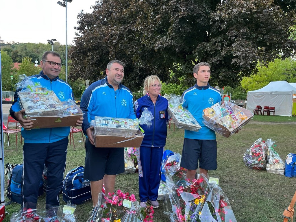 L'équipe composée de DELOCHE Laurent, MEUNIER Gérard et MUGNIER Gérard s'inclinent aux barrages. La performance du week-end est venue de l'équipe composée de Lucas DELOCHE, Jacky FRANI et Franck MARTIN qui perdent en finale mais se qualifient pour le championnat de France double qui aura lieu à MACON. Un grand BRAVO à eux.