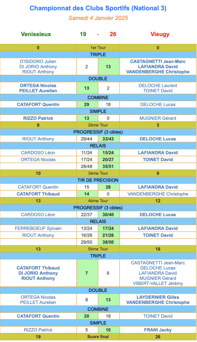 4ème victoire pour les bleus qui se déplaçaient chez la sympathique équipe de Venissieux (69)