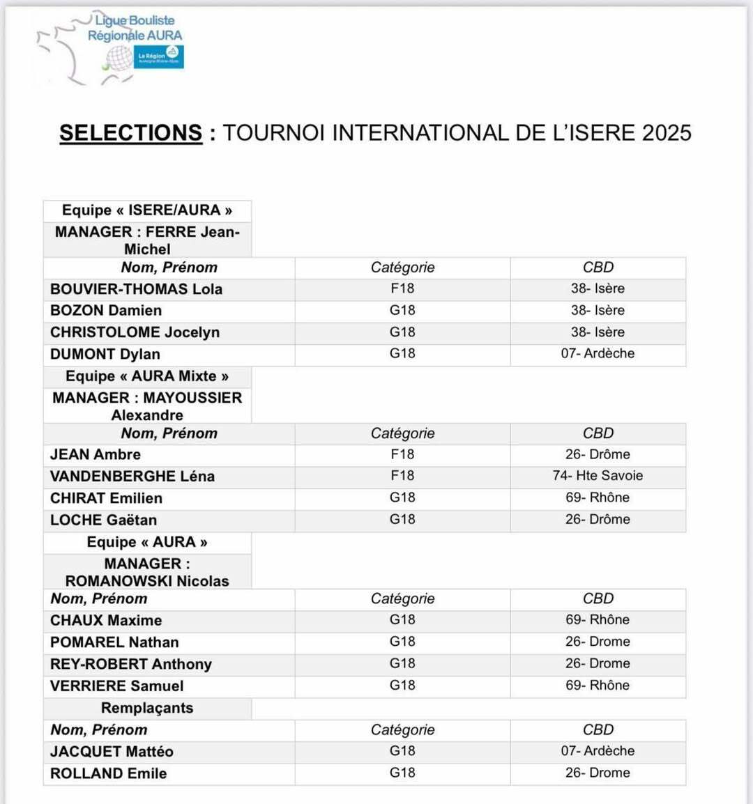 Tournoi international de l’Isere 2025 avec la 3ème sélection consécutive pour Léna VANDENBERGHE qui représentera la région en équipe mixte cette année, après avoir été sélectionnée deux ans en équipe féminine
