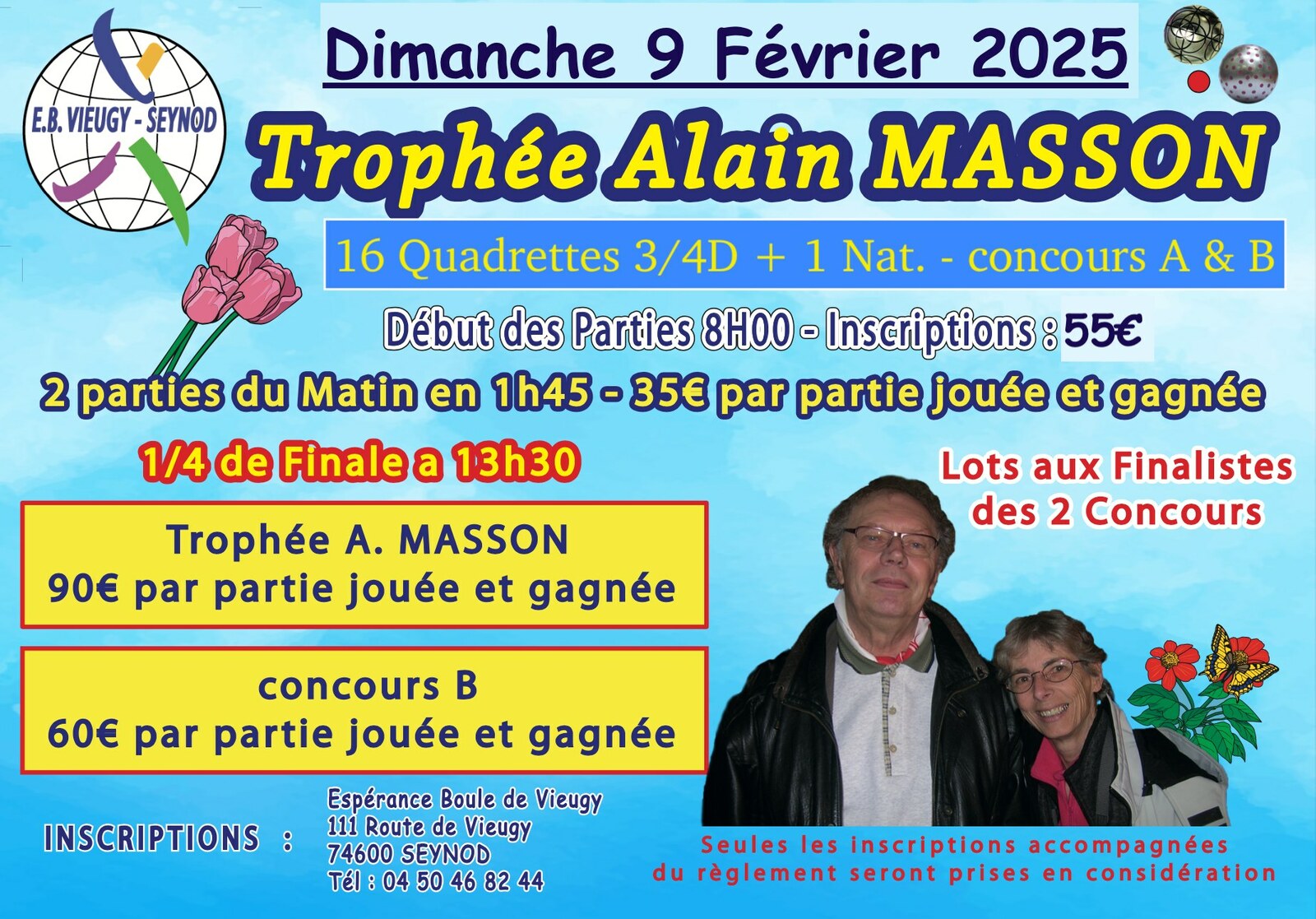 Aussi, envoyer votre chèque d’inscription au club : Espérance Boules de Vieugy, 111 route de vieugy, 74600 Seynod